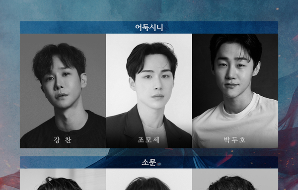 문화저널코리아 김영일 기자 | 창작 뮤지컬의 새로운 지평을 열어가고 있는 ㈜뉴프로덕션이 2026년 상반기 첫 창작 뮤지컬 <어둑시니>의 개막 소식을 알렸다. 오는 6월 9일(화)부터~ 8월 30일(일)까지 NOL 서경스퀘어 스콘 2관에서 공연하는 뮤지컬 <어둑시니>(기획/제작_(주)뉴프로덕션, 프로듀서_이성진, 작_김지식, 작곡_유한나, 연출_이기쁨, 안무감독_신선호, 음악감독_민활란)는 공연 포스터와 함께 전체 캐스팅을 공개하며 이목을 집중시켰다. 뮤지컬 <어둑시니>는 인간의 두려움을 먹고 사는 어둠의 신인 ‘어둑시니’와 늘 어둠 속에 산다하여 어둑시니라고도 불리는 맹인 ‘소문’이 책과 이야기를 매개로 새로운 세상, 새로운 밤을 함께 꿈꾸게 되며 벌어지는 이야기를 그린다. ‘소문’은 어둠 속에서도 인간에 대한 믿음과 사랑을 잃지 않는 인물로 인간을 혐오하는 ‘어둑시니’의 세상이 ‘소문’으로 인해 점차 빛으로 물들게 된다. 같은 어둠 속 다른 세상을 살던 두 인물이 점차 가까워지며 각자 가지고 있는 상처를 치유하고 성장하는 내용을 담고 있다. 함께 공개한 공연 포스터는 ‘어둑시니’의 실루엣과 도포 자락을 메인으로 신비로운 분위