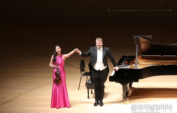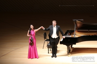 문화저널코리아=부산 엄성운 기자 |부산콘서트홀의 겨울 밤은 조용했지만, 무대 위의 음악은 분명했다. 창단 30주년을 맞은 그랜드오페라단이 지난 13일 선보인 ‘2025 한수진 & 피터 오브차로프 송년 듀오 콘서트’는 화려한 기념행사보다, 음악 그 자체로 감사와 위로를 전한 무대였다. 한 해의 끝자락, 관객들은 박수보다 긴 호흡의 침묵으로 이 공연을 받아들였다. 이날 무대에 오른 바이올리니스트 한수진과 피아니스트 피터 오브차로프는 기교보다 서사를 선택했다. 두 연주자는 처음부터 끝까지 서로의 호흡을 세심하게 조율하며, 음악이 자연스럽게 흐르도록 했다. 한수진은 1666년산 안토니오 스트라디바리우스를 통해 절제된 음색과 깊은 울림을 동시에 구현했고, 오브차로프의 피아노는 과하지 않은 음량과 안정된 터치로 바이올린 선율을 견고하게 지탱했다. 1부는 내면을 향한 사유의 시간이었다. 아르보 패르트의 ‘거울 속의 거울’에서 바이올린의 긴 호흡은 공간을 가득 채우기보다, 여백을 남기며 관객의 감각을 깨웠다. 이어진 슈만의 ‘바이올린 소나타 1번’에서는 낭만주의 특유의 불안과 서정이 교차했고, 두 연주자는 감정을 과장하지 않으면서도 밀도 있게 풀어냈다. 비제의 오페