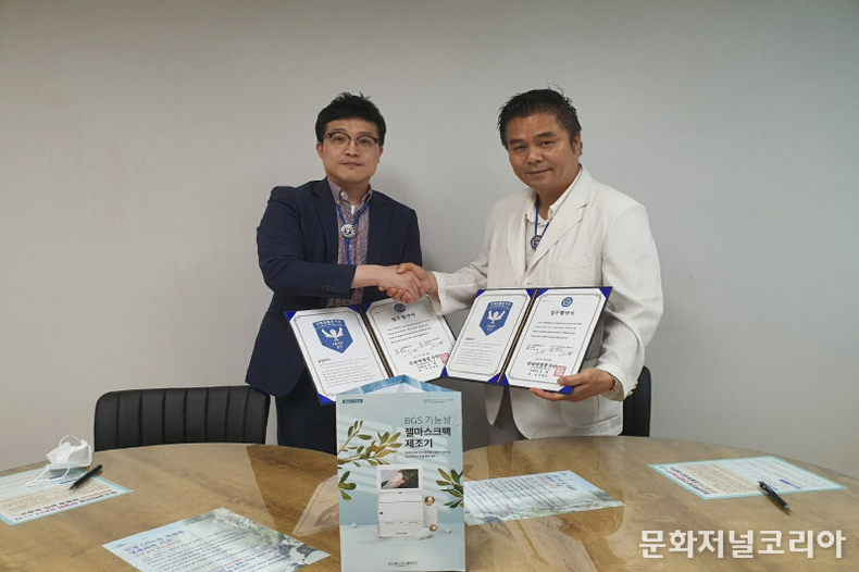 문화저널코리아 조정일 기자 | 지난 28일 수요일 오후3시 관악구에 위치한 국제엔젤봉사단(송해 명예총재) 사무실에서 비지에스코스메틱 주식회사와 업무협약식이 있었다.