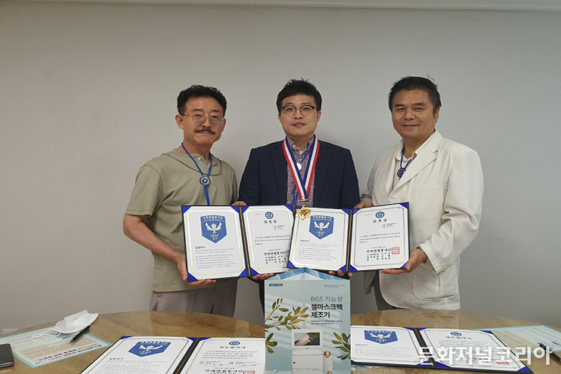 발명품 BGS 기능성 젤마스크 제조기는 엠플형태의 화장품 액상를 개인 맞춤형태로 제조하여 가정에서도 각자 피부에 맞는 비률로 제조,도포 할 수있는 세계유일의 마스크제조기이며, 국내뿐 아니라 해외에서도 문의가 쇄도하고 있다.