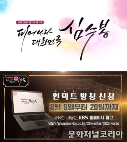 문화저널코리아 김영일 기자 | KBS ‘2021 한가위 대기획 '피어나라 대한민국' 심수봉’이 오늘(9일)부터 시작된 언택트 관객 모집과 함께 전 국민을 하나로 만들어 줄 소통 공연의 막을 올린다.