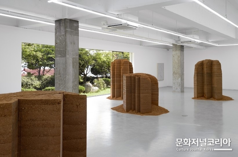 서울관 중정에서 펼쳐지는 '막간'은 전시의 중요한 전환점이다. 풀로 만든 고사리의 '초사람'과 흙으로 다져진 김주리의 '물 산'은 계절을 통과하며 형태를 잃는다. 그러나 그 자리에 새싹이 돋는다. 작품은 사라지며 다른 생성을 부른다. 미술관이라는 제도적 공간 한가운데에서 소멸과 생성이 교차하는 장면이다.