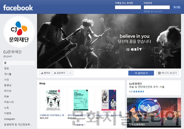 실제 CJ문화재단 페이스북 공식 채널(https://www.facebook.com/cjazit)은 재단에서 지원하는 창작자들과 이들의 작품 및 공연, 공모 소식 등을 활발히 전달하고 있다.
