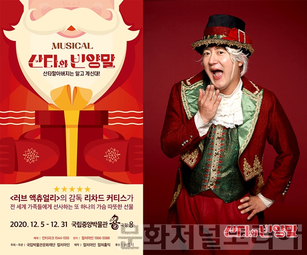 뮤지컬 ‘산타와 빈양말’은 오는 12월 5일부터 12월31일까지 국립중앙박물관 극장용에서 공연하며, 현재 인터파크 티켓에서 10월 30일까지 1차 조기예매 시 예매 시 최대 60%의 할인을 받을 수 있다.