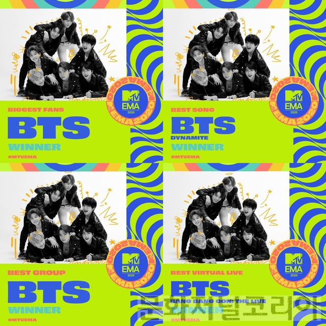 '2020 MTV 유럽 뮤직 어워즈(EMA)'에서 4관왕