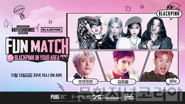 소속사 YG엔터테인먼트에 따르면 블랙핑크는 13일 오후 10시 공개되는 배틀그라운드 모바일 게임쇼 '펀 매치(FUN MATCH – BLACKPINK in your area)' 방송에 출격한다.[문화저널코리아]