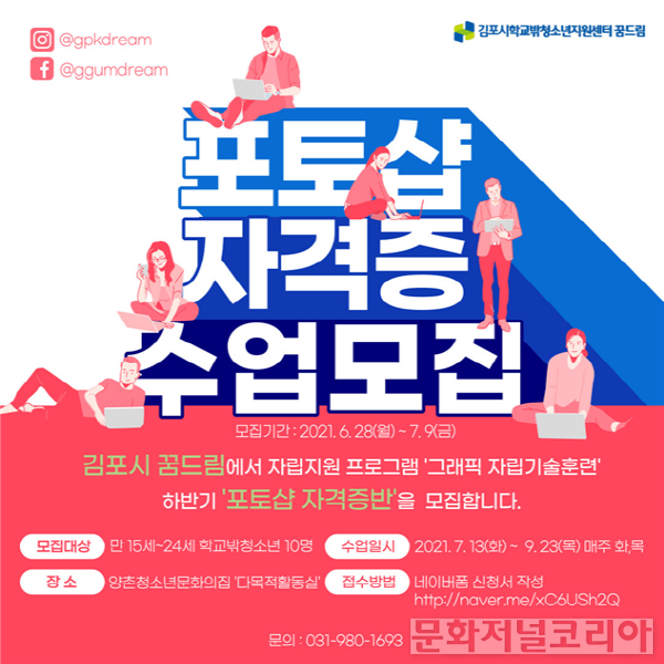 문화저널코리아 조정일 기자 | 김포시청소년재단 학교밖청소년지원센터는 학교밖청소년의 자립지원을 목적으로 하는 자립기술훈련 ‘GTQ포토샵 자격증반’ 프로그램을 7월 13일부터 시행한다.
