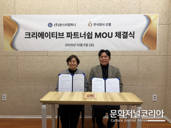 문화저널코리아 김영일 기자 | 주식회사 오젤(대표 박수진)과 ㈜본스타컴퍼니(대표 홍기성)가 콘텐츠 제작 및 브랜드 마케팅 역량 강화를 위한 전략적 협력에 나선다. 양사는 5일 서울 서초구 본스타컴퍼니 본사에서 ‘크리에이티브 파트너십’ 업무협약(MOU)을 체결했다고 6일 밝혔다.
