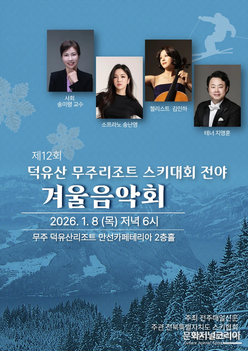 이번 행사는 전국 스키·스노보드 대회를 하루 앞두고 마련된 공식 전야 행사로, 대회 참가자와 관계자들이 한자리에 모여 음악을 통해 경기의 시작을 함께 나누는 자리다. 눈 덮인 덕유산의 겨울 풍경 속에서 펼쳐지는 클래식 무대는 경기 전 긴장을 완화하고, 참가자 간 교류와 화합을 도모하는 문화 프로그램으로 의미를 더한다.