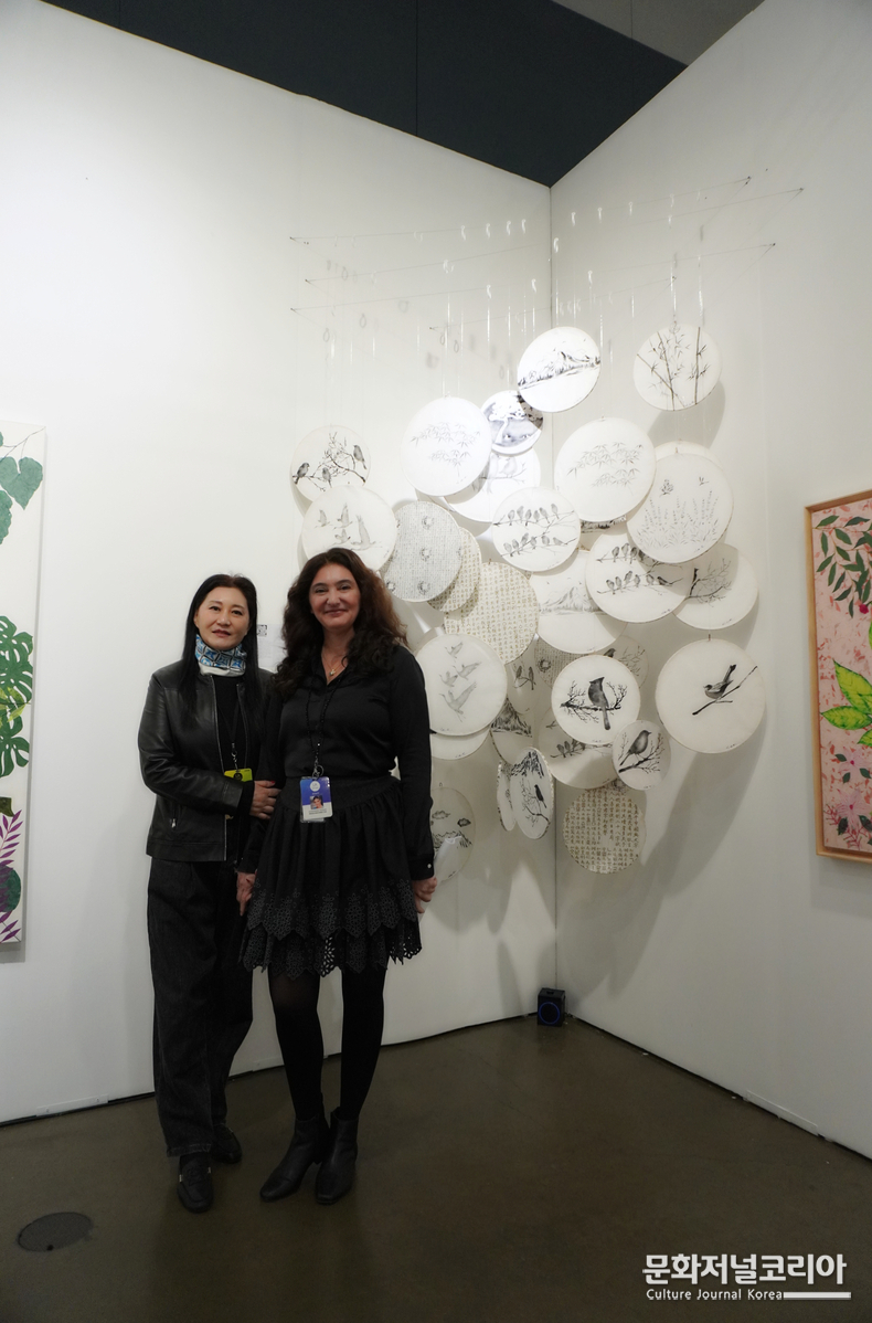 문화저널코리아 오형석 기자 |한국 전통 재료인 한지가 미국 현대미술의 중심 무대에서 깊은 울림을 전했다. 한국 작가 서은진(Jinny Suh) 이 1월 5일부터 5일간 미국 로스앤젤레스에서 열린 LA ART SHOW에서 'FEATURED EXHIBITION' 특별 부스 전시 작가로 선정되며 국제 무대의 주목을 받았다. 특히 서은진 작가가 선보인 한지 설치 작품 'Peaceful Forest(평온한 숲)'은 미국 관객들의 감성을 강하게 자극하며 전시의 주요 화제로 떠올랐다.