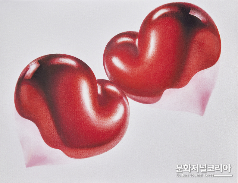 작가는 하트를 통해 감정의 여러 층위를 드러낸다. 기쁨과 설렘, 불안과 두려움, 그리고 견딤의 시간까지. 작품 속 하트들은 동일한 형상을 공유하면서도 각기 다른 표정과 밀도를 지닌다. 이는 하트가 단일한 의미로 환원될 수 없는 존재임을 말해준다. 사랑이라는 이름 아래 포개진 삶의 복합적인 감정들이 화면 위에서 조용히 드러난다.