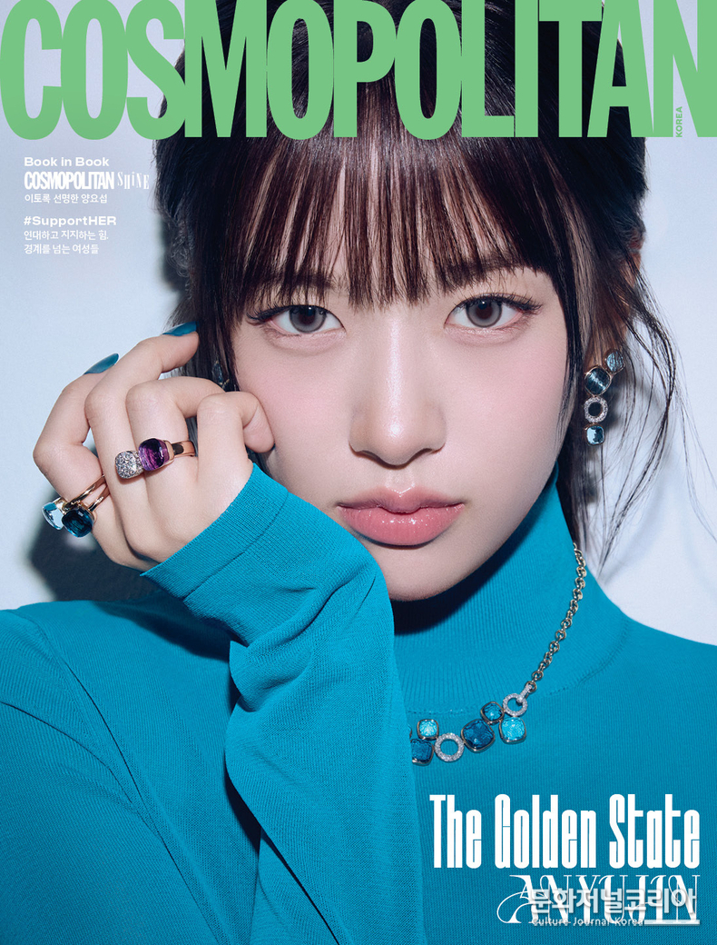 특유의 털털하고 밝은 에너지로 촬영장에 활기를 더해준 안유진의 커버는 ‘Victory’ 콘셉트로 진행됐다. 아이브 대표곡 의 도입부를 맡았던 그의 당찬 목소리처럼, 긍정적인 ‘퀸의 마인드’를 표현한 안유진의 화보는 형형색색의 컬러스톤이 돋보이는 주얼리 하우스 포멜라토와 함께했다.