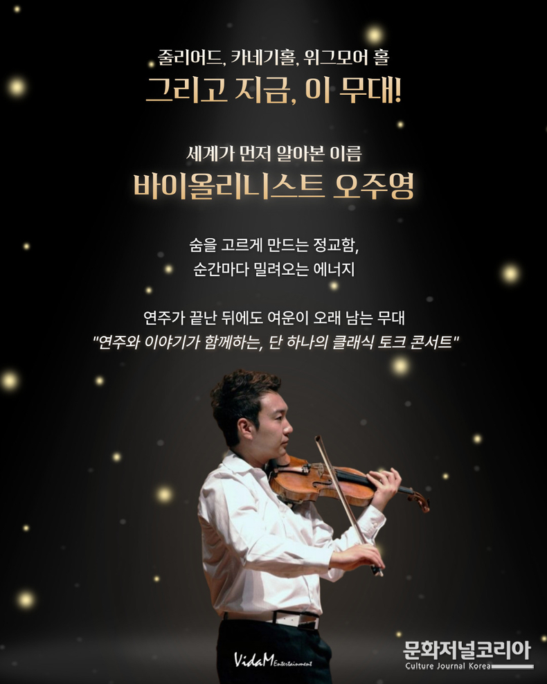 문화저널코리아 오형석 기자 |바이올리니스트 오주영이 오는 3월 3일 부산과 3월 5일 서울에서 '바이올리니스트 오주영 토크 콘서트'를 개최한다. 이번 공연은 독주회 형식의 연주회가 아니라, 연주와 대화를 결합해 음악가의 경험과 생각을 관객과 공유하는 토크 콘서트 형식으로 진행된다.
