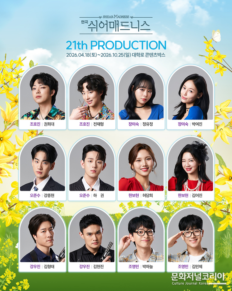 문화저널코리아 김영일 기자 | 2021년부터 2025년까지 5년 연속 예매처 랭킹 1위를 기록하며 관객들의 뜨거운 사랑을 받고 있는 대학로 대표 스테디셀러 연극 <쉬어매드니스>가 무대를 더욱 화려하게 장식할 21차 프로덕션의 캐스팅 라인업을 공개했다.