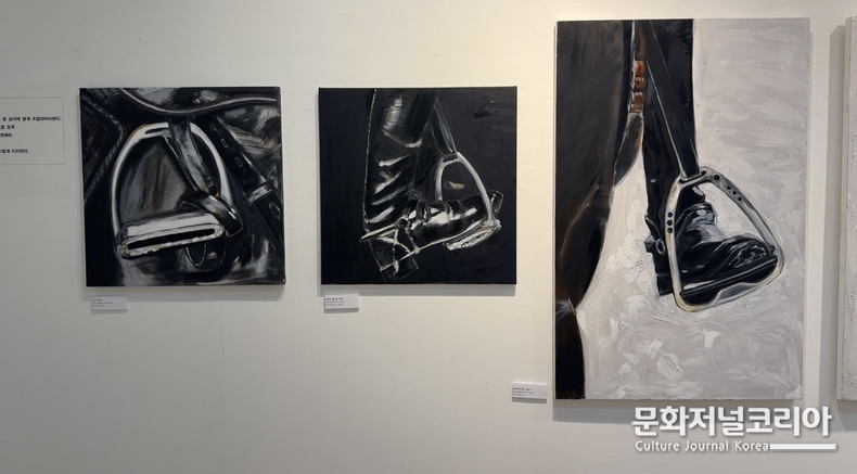 질주보다 먼저 필요한 것은 균형이고, 속도보다 먼저 필요한 것은 경청이라는 작가의 문제의식은 전시 전반을 관통한다. 말의 귀는 단순한 신체 일부가 아니라 ‘듣는 감각’의 은유가 되고, 등자는 몸과 의지를 지탱하는 균형의 구조가 된다. 고삐와 굴레 역시 통제의 상징에 머무르지 않고, 삶을 어디로 이끌 것인가를 묻는 방향 감각의 메타포로 읽힌다.
