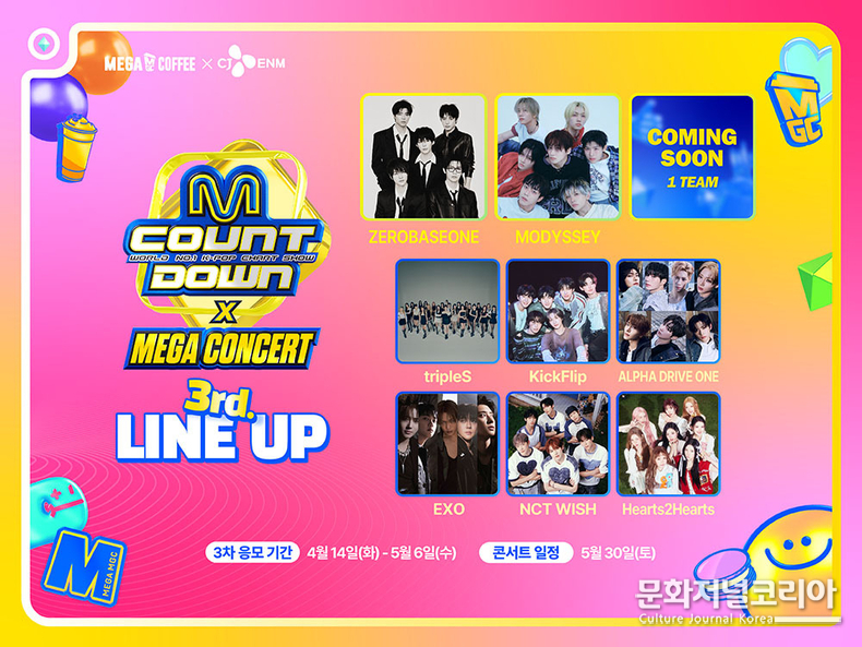 문화저널코리아 김영일 기자 | 메가MGC커피가 오늘(14일) ‘M COUNTDOWN X MEGACONCERT’(이하 메가콘서트) 3차 프리퀀시 이벤트를 오픈했다.