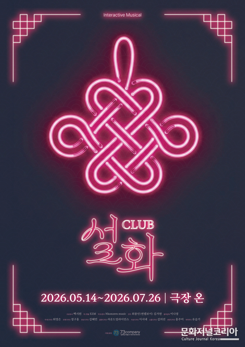 문화저널코리아 김영일 기자 | 인터랙티브 뮤지컬 <Club 설화>가 (제작 (주)칠삼컴퍼니, 프로듀서 백시원) 5월 14일부터 대학로 극장 온(구, 씨제이아지트)에서 개장한다.