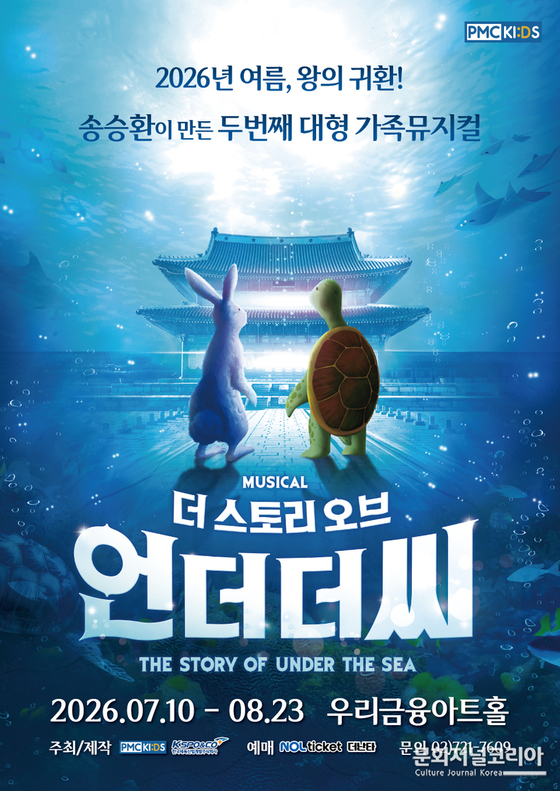 <더 스토리 오브 언더더씨>는 2026년 7월 10일(금)부터 8월 23일(일)까지 우리금융아트홀에서 공연된다. 이번 시즌은 기존 작품의 서사와 감동을 유지하면서도 연출과 음악, 무대 전반의 완성도를 한층 끌어올린 것이 특징으로, 화려해진 무대와 밀도 높은 연출, 생동감 넘치는 음악이 어우러져 관객 몰입도를 극대화할 예정이다.