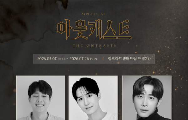 문화저널코리아 김영일 기자 | 다가오는 5월 개막하는 창작 뮤지컬 ‘아웃캐스트’ [(주)엠제이스타피시]의 캐스팅이 공개되었다. 뮤지컬 ‘아웃캐스트’는, 콘서트 뮤지컬 ‘트루스토리’, 뮤지컬 ‘천사에 관하여;타락천사편’, ‘아폴로니아’, ‘아킬레스’, ‘라레볼뤼시옹’, ‘스톤’, ‘꼼메디아 디 피노키오’에서 호흡을 맞춘 김운기 연출, 이희준 작가, 이아람 작곡가가 함께 한다. 맨해튼 뒷골목의 구제샵. 오늘밤도 벌어지는 두 사람의 연극놀이.귀족과 서민 모두가 교회에 출석하여 가장 값진 것을 바치며 기도하던 시절.그러나, 폐허로 버려진 고대의 신전에도 누군가 두고 간 소망의 돌이 쌓이던 시절.냉혹하기로 유명한 젊은 수사가 이단 재판을 선포한다. 광야에서 불경한 노래를 부르며 추종자를 늘려가던 청년.수사는 청년의 삶 자체가 이단의 예언으로부터 시작되었음을 고발한다. 2월 막을 올린 뮤지컬 ‘스톤’에 이어 이동연, 박경호, 이승준, 이세헌이 다시 한 번 의기투합하였으며, 차규민, 함태규가 새로 합류한다. 이단을 증오하는 수사 ‘알렉산드로스’ 역에는 이승준, 이세헌, 함태규가 캐스팅되었다.광야에서 노래하는 자 ‘필로스’역은 이동연, 박경호, 차규민이 연기한다.
