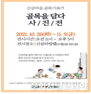문화저널코리아 김영일 기자 | 양천구 신월3동에서는 10월 26일부터 11월 5일까지 2주간 신월3동의 마을기록을 공유하고 도시재생 참여 유도를 위한 ‘골목을 담다’ 사진전이 개최된다.