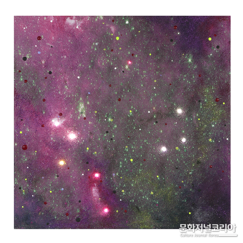 ADEL LEE의 화면을 채우는 둥근 형상은 닫힌 눈 안쪽에서 비로소 떠오르는 기억의 파편과 닮아 있다. 작가는 하나의 기억을 고정된 이미지로 묶어두지 않는다. 오히려 그것이 또 다른 기억을 낳고, 독립된 에너지를 지닌 원(圓)으로 증식하는 과정을 시각화한다. 화면을 가득 채운 점과 LED 빛은 단순한 장식적 효과가 아니다. 그것은 인식 이전의 경계에서 미세하게 진동하는 감각의 잔광이다.