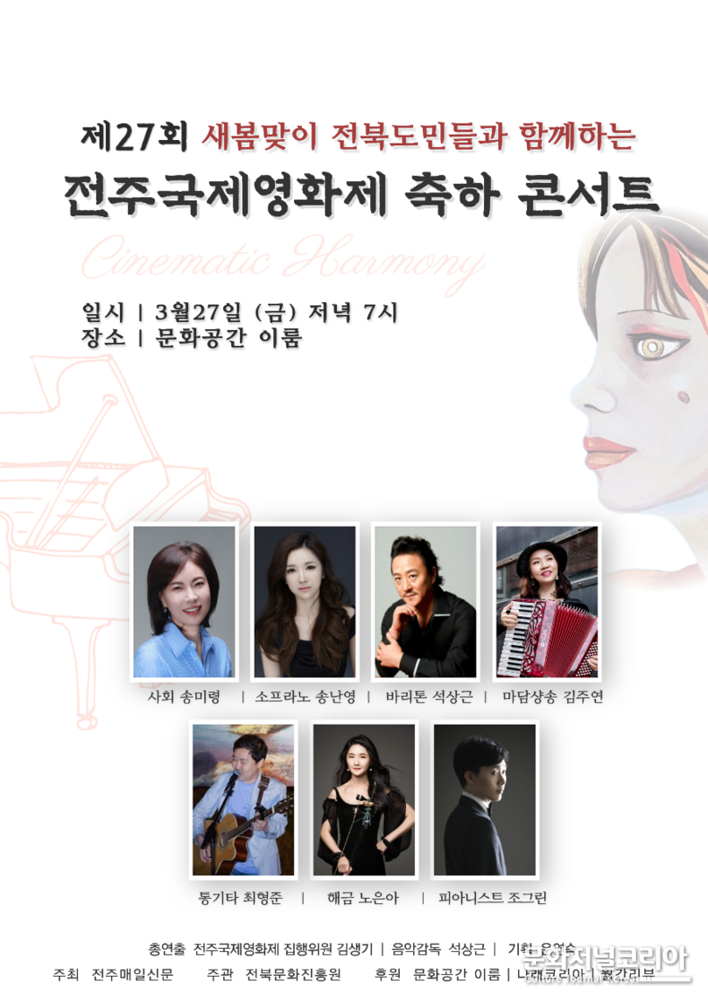 주최와 주관, 후원 구조 역시 눈에 띈다. 전주매일신문이 주최하고 전북문화진흥원이 주관하며, 문화공간 이룸·나래코리아·월간리뷰가 후원한다. 지역 언론과 문화기관, 민간 예술 플랫폼이 함께 손잡고 영화제 축하 무대를 만든다는 점에서 이번 콘서트는 단순 공연을 넘어 지역 문화생태계의 협업 모델로도 읽힌다. 국제영화제라는 대형 브랜드에 지역 문화예술의 실질적 참여가 더해지면서, 전주가 왜 ‘문화도시’로 불리는지 다시 보여주는 장면이 될 전망이다.