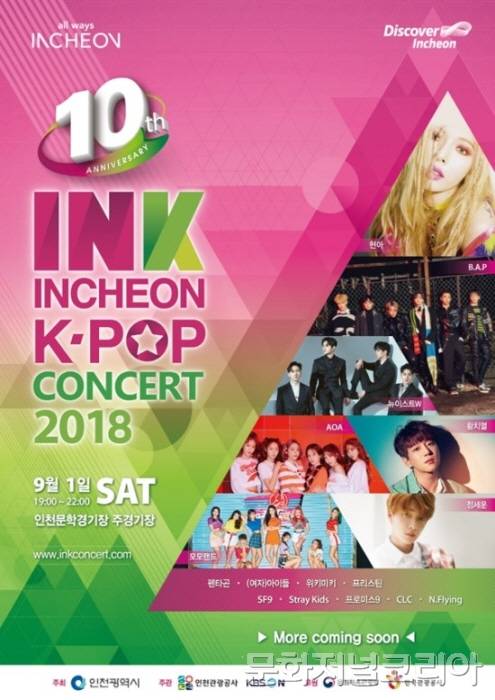 오는 9월 1일 인천 문학경기장에서 인천시와 인천관광공사가 주관하는 2018 INK콘서트(Incheon K-POP Concert)의 2차 라인업이 공개됐다.