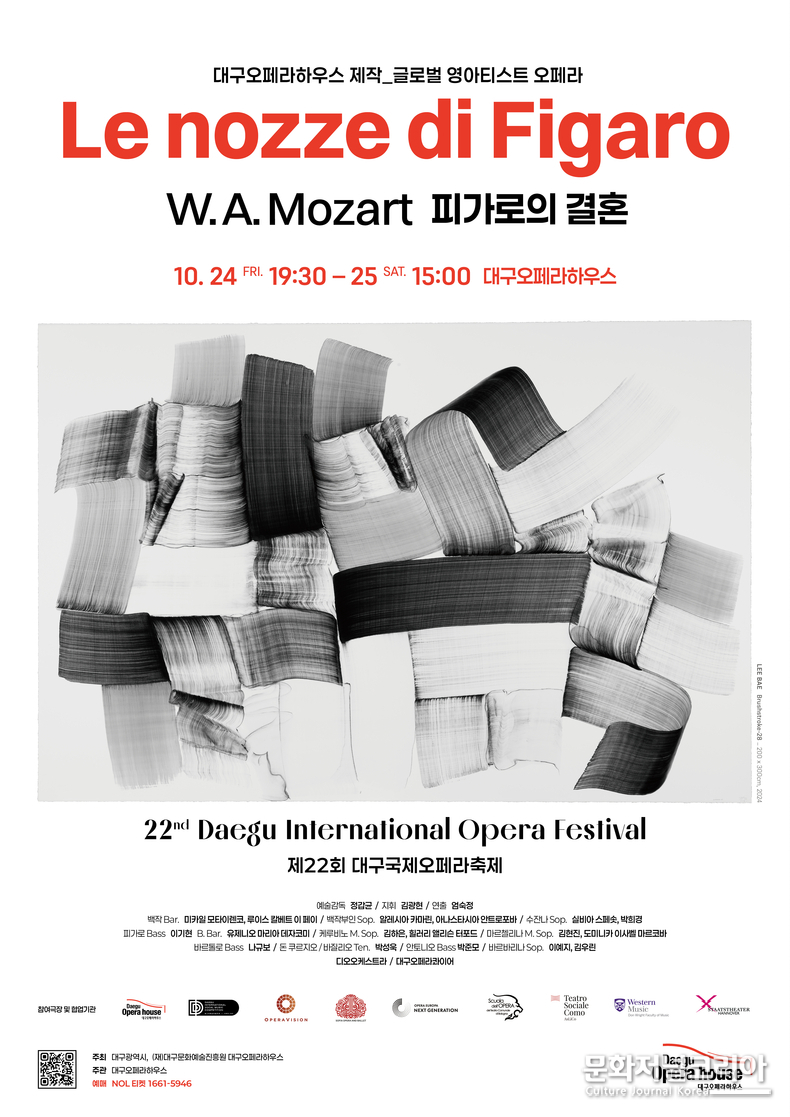 문화저널코리아 오형석 기자 | (재)대구문화예술진흥원 대구오페라하우스(관장 정갑균, 이하 '대구오페라하우스')가 주관하는 제22회 대구국제오페라축제에서 오페라 '피가로의 결혼'이 오는 10월 24일(금) 오후 7시 30분, 25일(토) 오후 3시, 대구오페라하우스 대극장에서 무대에 오른다. 이번 공연은 문화체육관광부 '2025 장르별 시장거점화 지원사업' 선정작으로, 글로벌 영아티스트 육성 프로그램과 연계된 축제의 핵심 콘텐츠로 주목받고 있다.