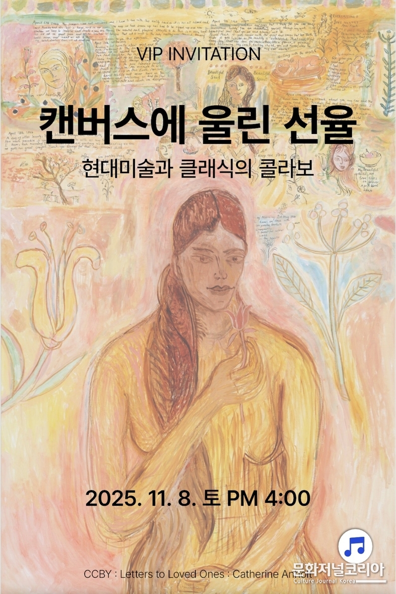 문화저널코리아 오형석 기자 |현대미술의 감성과 클래식 음악의 섬세한 선율이 하나로 어우러지는 특별한 예술 향연, '캔버스에 울린 선율'이 오는 11월 8일(토) 오후 4시, 경기도 광주에 위치한 복합문화공간(대표 이목인) 아이엠갤러리에서 열린다.