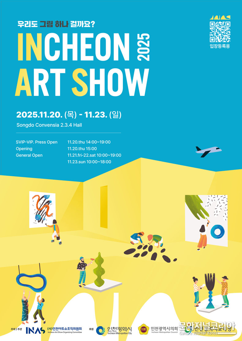 문화저널코리아 오형석 기자 |아시아를 대표하는 국제 미술축제 '인천아트쇼 2025'가 오는 11월 20일(목)부터 23일(일)까지 인천 송도 컨벤시아 전관에서 성대하게 열린다. 국내외 200여 개의 갤러리와 예술기관, 1,000여 명의 작가가 참여하는 이번 행사는 한국 현대미술의 경쟁력을 세계에 알리는 아시아 최대 규모의 프리미엄 아트페어로 주목받고 있다.