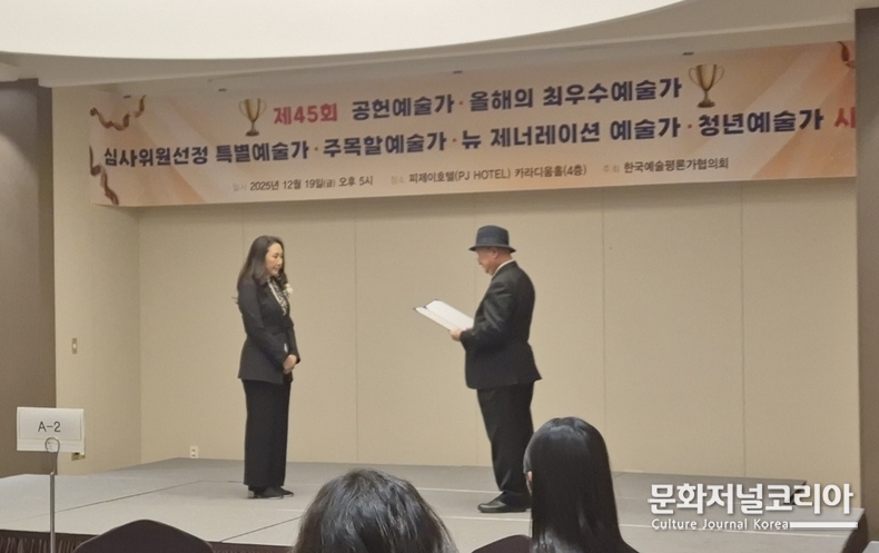 서 작가는 지난 12월 19일, 서울 피제이(PJ)호텔 카라디움 홀에서 열린 제45회 '올해의 최우수예술가' 시상식에서 미술 부문 수상자로 선정됐다. 한국예술평론가협의회(회장 장석용)가 주최하는 이 시상식은 문학·미술·공연예술 전반에서 한 해 가장 주목할 예술가를 엄정한 심사를 통해 선정하는 권위 있는 자리다.