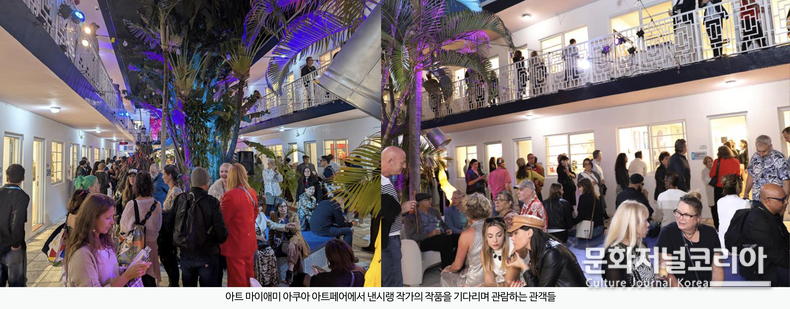 아쿠아 아트 마이애미는 사우스비치의 클래식 호텔 공간을 전시장으로 활용해 회화, 조각, 설치, 퍼포먼스 등 다양한 장르가 자유롭게 공존하는 실험적인 아트페어로 알려져 있다. 젊고 트렌디한 컬렉터와 예술 애호가들이 동시대 미술의 최전선을 경험하기 위해 찾는 공간으로, 수년간 독자적인 정체성을 구축해왔다.
