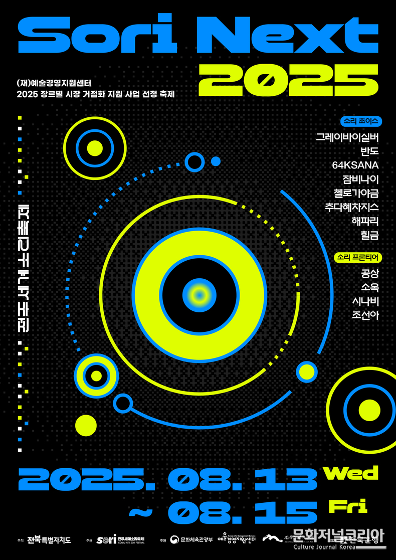 소리축제조직위원회는 최근 문화체육관광부와 (재)예술경영지원센터(이하 예경)의 ‘2025 장르별 시장 거점화 지원사업 평가 결과, 지난해 국비 4.5억원에 이어 2026년 국비 3.6억원 결정예산을 확정했다.