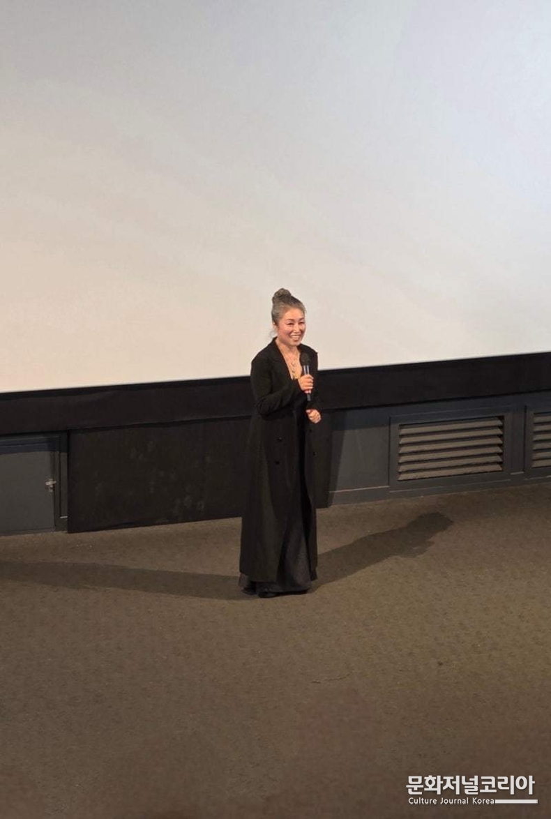 상영에 앞서 진행된 무대 인사에서는 영화의 주연이자 연출과 제작을 맡은 김한나 감독이 무대에 올라 작품을 소개했다. 그는 약 3년에 걸친 제작 과정과 작품에 담긴 메시지를 차분한 어조로 전하며 관객들에게 감사의 인사를 전했다.