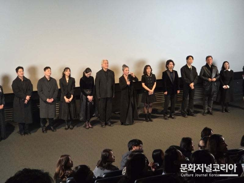 특히 이날 무대 인사에서는 출연 배우 전원이 함께 무대에 올라 눈길을 끌었다. 보통 시사회에서는 감독과 주요 배우만 간단히 인사를 나누는 경우가 많지만, 김한나 감독은 단역 배우까지 모두 무대에 불러 관객들에게 소개했다. 이는 영화 제작이 한 사람의 작업이 아니라 여러 사람의 노력과 헌신으로 완성되는 공동의 창작 과정이라는 점을 보여주는 장면이었다.
