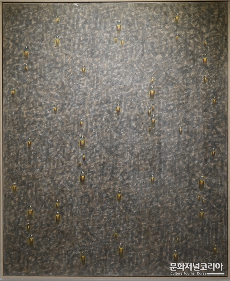 한편 김창열의 물방울은 단순한 재현이 아니다. 그것은 화면 위에 맺힌 하나의 질문이다. 빛을 반사하며 맺힌 작은 물방울 속에서 우리는 세계의 모습을 보기도 하고, 동시에 아무것도 없는 ‘무(無)’를 마주하기도 한다.