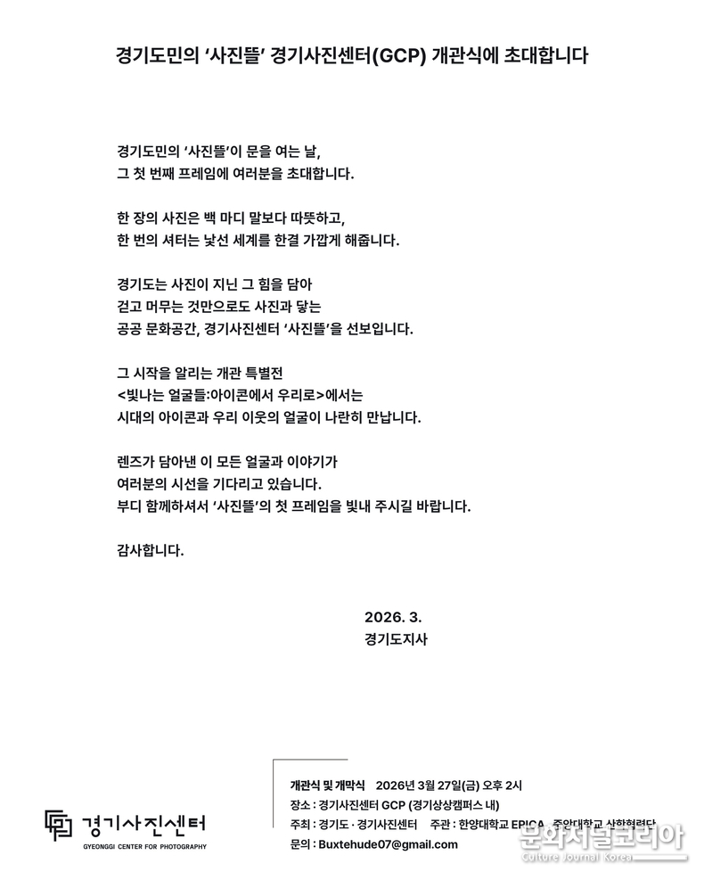 이번 전시는 단순히 한 기관의 개관을 알리는 행사를 넘어, 경기사진센터가 앞으로 어떤 방향의 사진 담론을 만들어갈지를 보여주는 선언에 가깝다.