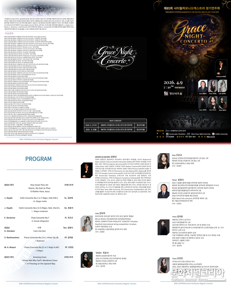 한편 시티필하모니오케스트라 제85회 정기연주회 ‘Grace Night Concerto’는 4월 9일 영산아트홀에서 열린다.