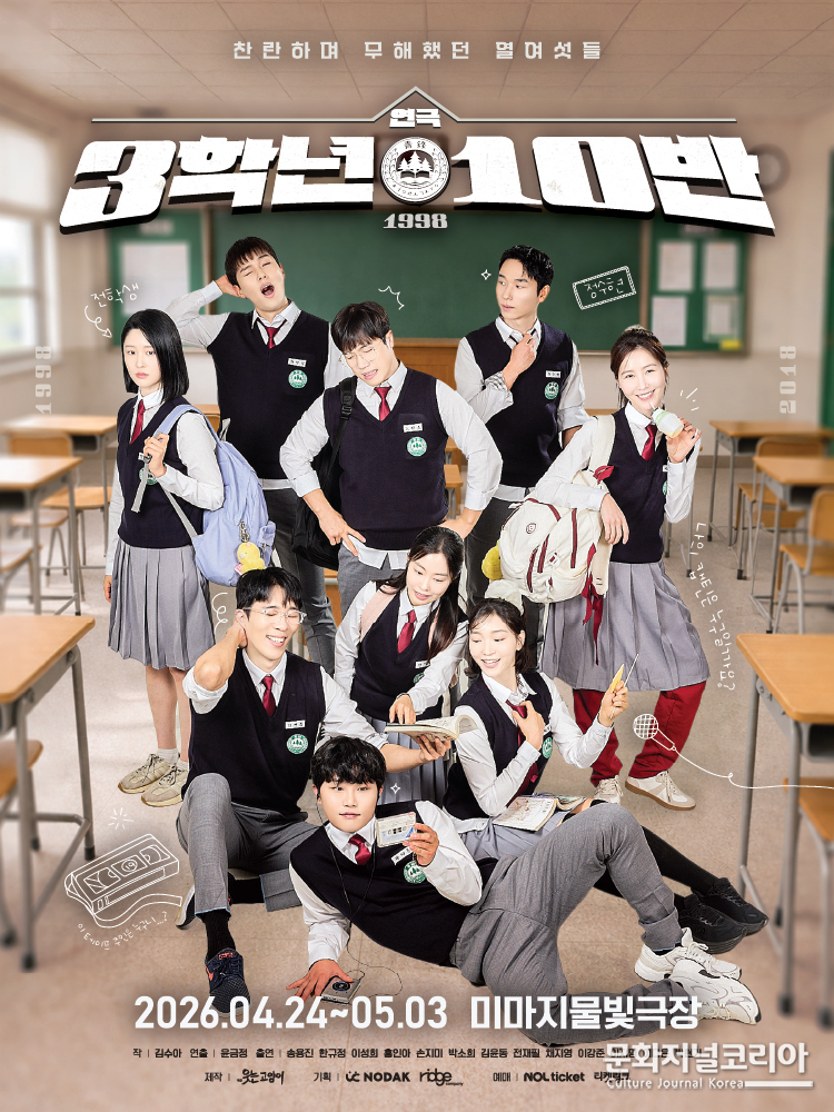 연극<3학년 10반>은 소극장 무대의 물리적 한계를 정면으로 돌파하는 연출력이 돋보이는 작품이다. 매 회차 11명의 배우가 무대 위에서 뿜어내는 폭발적인 에너지는 관객을 단순한 관람객이 아닌 3학년 10반 교실의 일원으로 변모시킨다.
