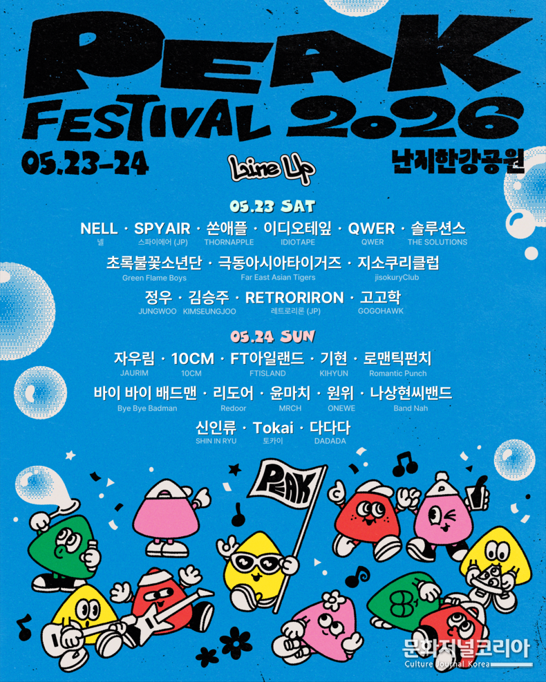 문화저널코리아 김영일 기자 | 오는 5월 23일과 24일, 난지한강공원에서 열리는 ‘PEAK FESTIVAL 2026(이하 피크 페스티벌)’가 금일 9일, 페스티벌의 대미를 장식할 최종 라인업을 발표하며 음악 팬들의 뜨거운 관심을 모으고 있다.