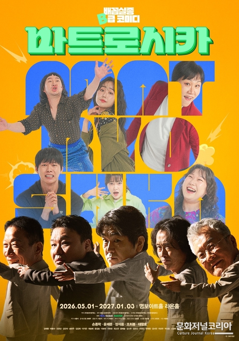 [투자: (주)호라이즌웍스 | 제작: 잡담스토레지(주) | 공동제작: (주)호라이즌웍스 | 작가: 서홍석 | 윤색&연출: 최해주 | 관람등급: 만 13세 이상 | 출연: 손종학, 윤제문, 정석용, 조희봉, 태항호, 김태향, 허동수, 오문강, 김진석, 송민주, 김강희, 이가은, 채승혜, 윤감송, 이보라, 이하린, 최소연, 윤예솔, 김나무, 임유진, 우정인, 한채원, 김낙연, 차선우, 박선호, 신성하, 윤부진, 한혜수, 배은지 | 공연 일정: 2026년 5월 1일(금) ~ 2027년 1월 3일(일)]