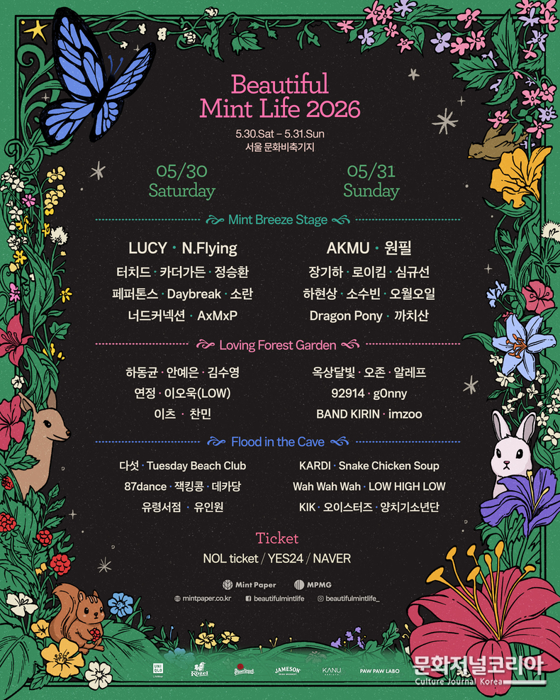 문화저널코리아 김영일 기자 | 뷰티풀 민트 라이프 2026, ‘원필’, ‘너드커넥션’ 등 8팀 추가 합류하며 총 48팀의 최종 라인업 확정